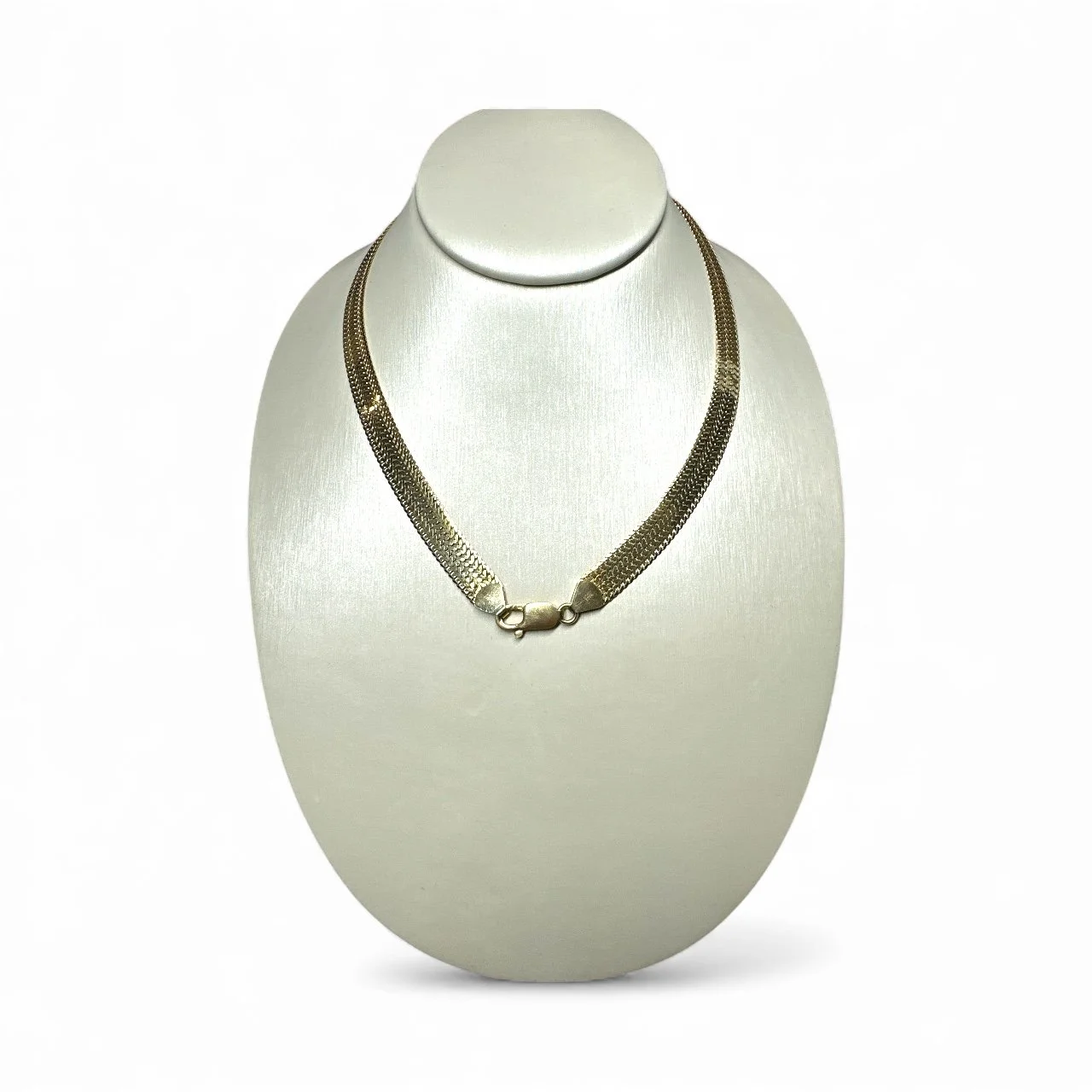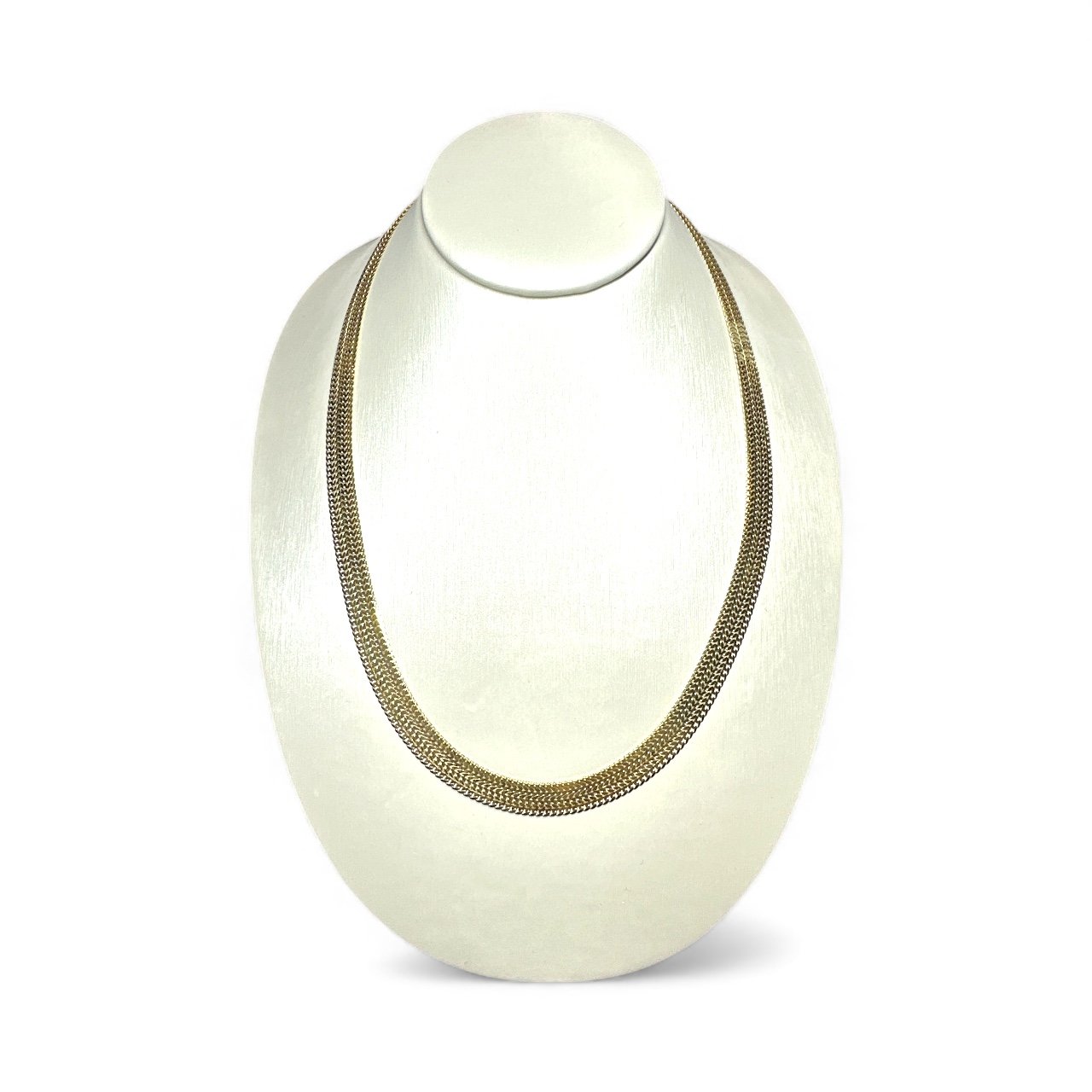 This substantial vintage-inspired chain is crafted in solid 14K yellow gold and features a smooth, flexible mesh-style design that lays beautifully against the neckline. Measuring 24.5 inches in length, it offers an elegant drape and enough presence to be worn alone or layered with your other favorites.