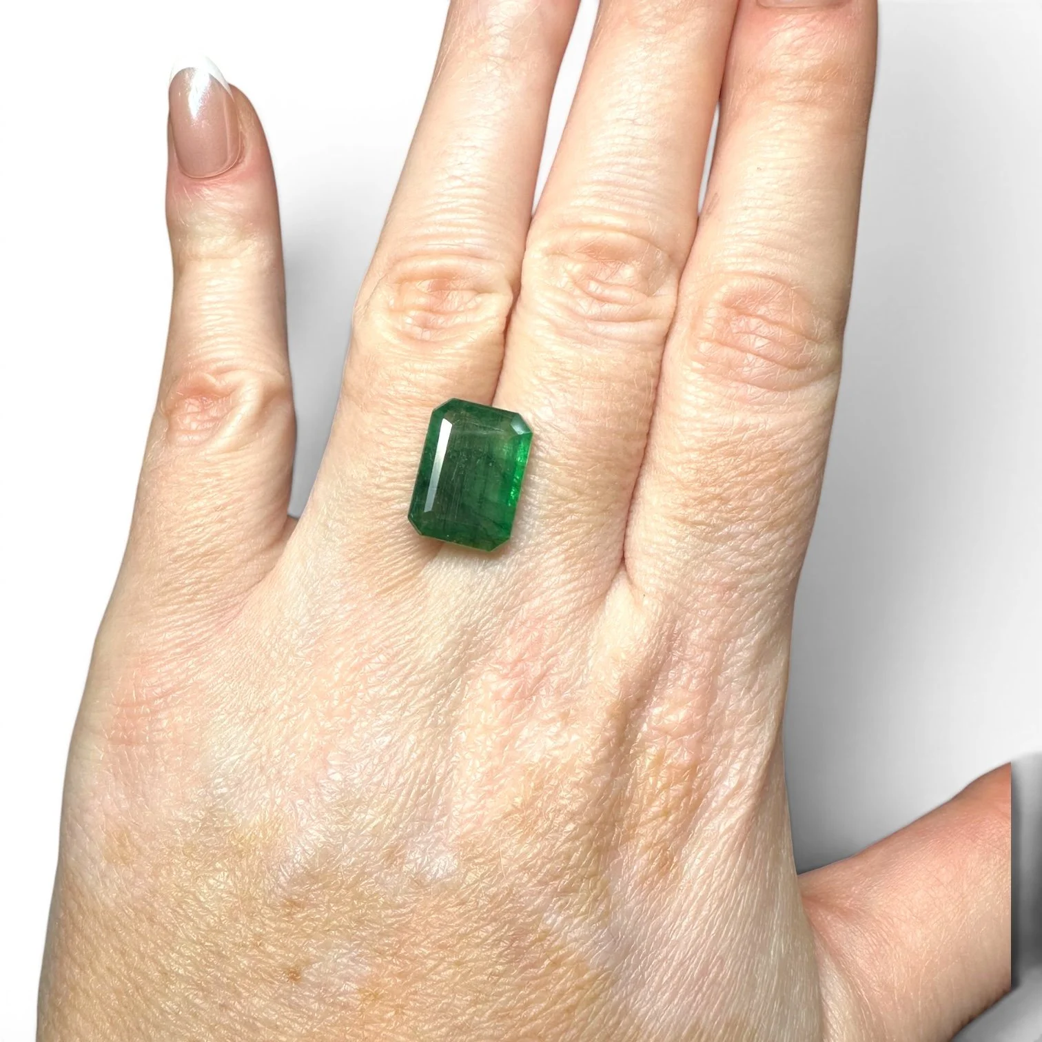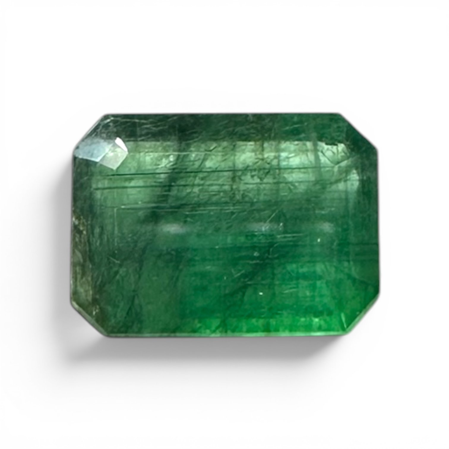 A substantial loose emerald featuring a classic emerald (step) cut.