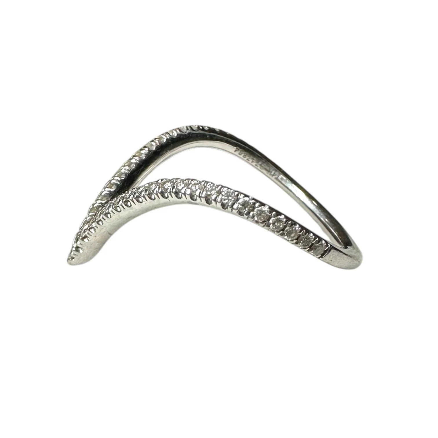 A modern V-style diamond band crafted in 14 karat white gold, offering a clean, angular silhouette with delicate brilliance.