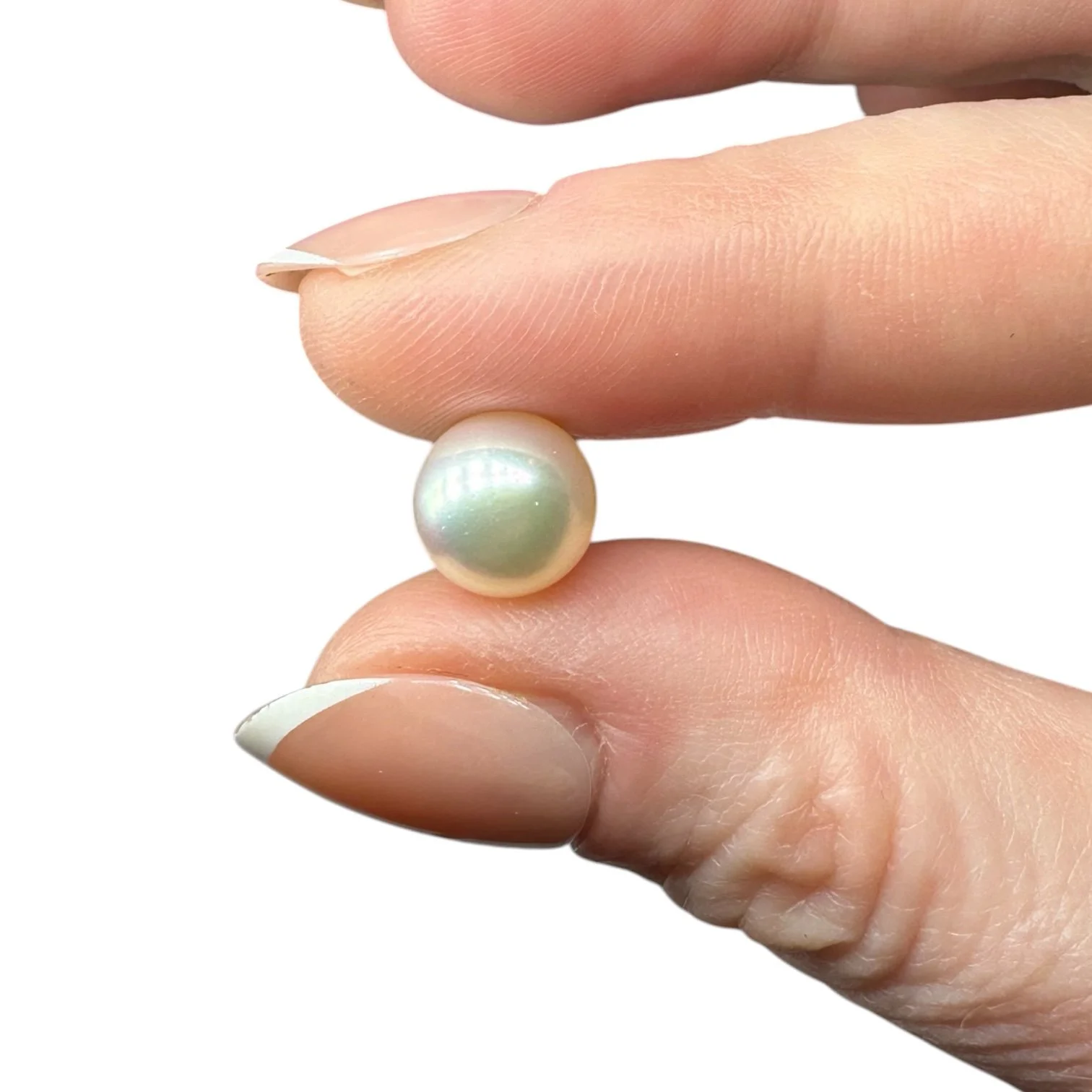 These earrings feature two well-matched pearls measuring approximately 9.00 mm, a desirable size for a refined yet noticeable look. The pearls display beautiful luster, giving them a bright, mirror-like surface with soft iridescent overtones that enhance their natural beauty.