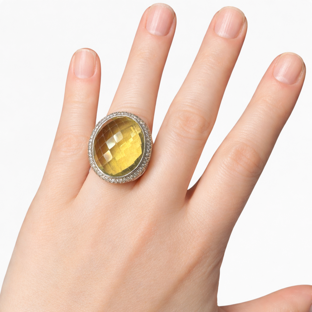 • Center stone: Lemon citrine (checkerboard cut)